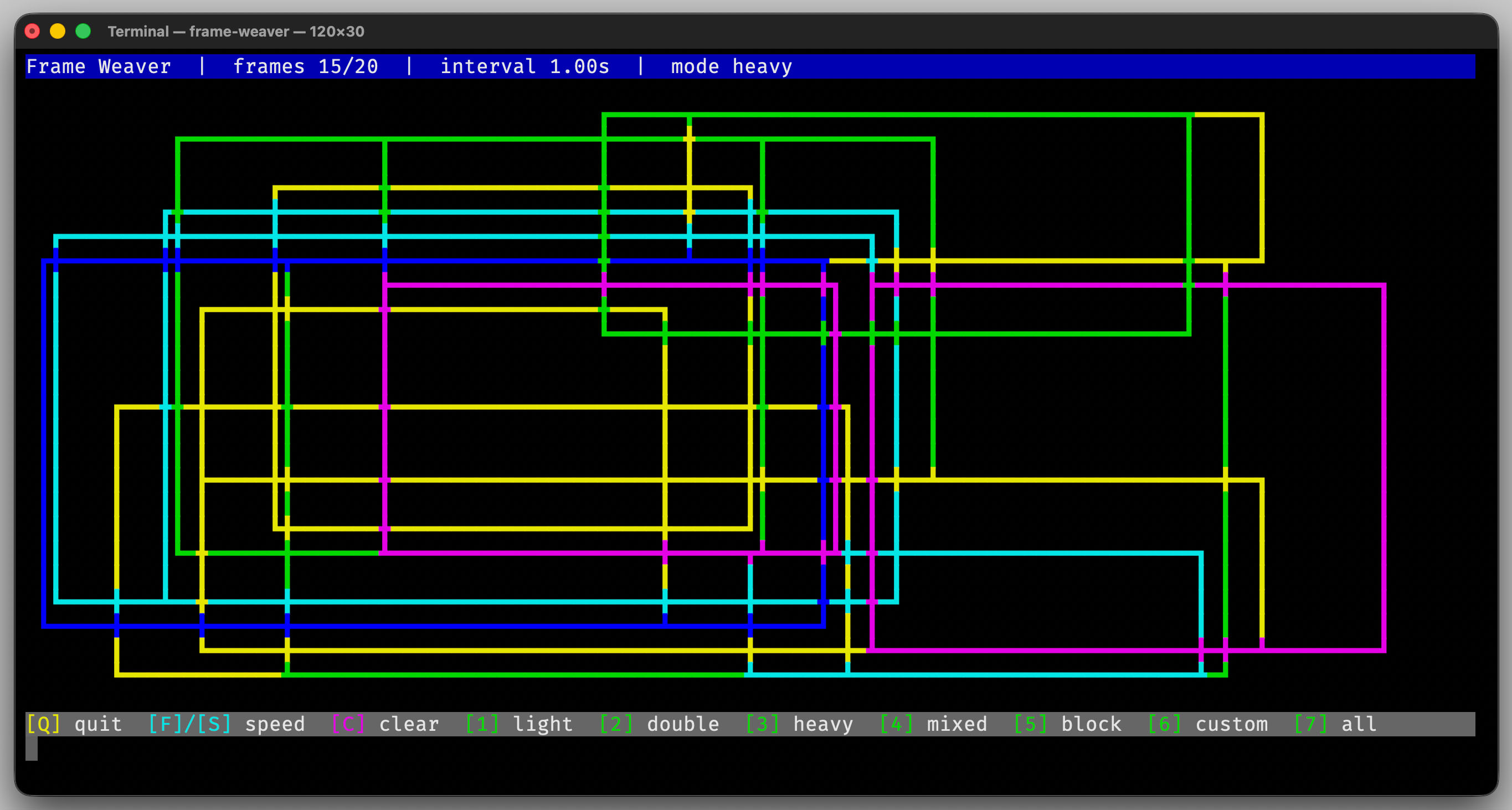 When lines intersect, the library automatically selects the best matching line characters to produce visually consistent borders.