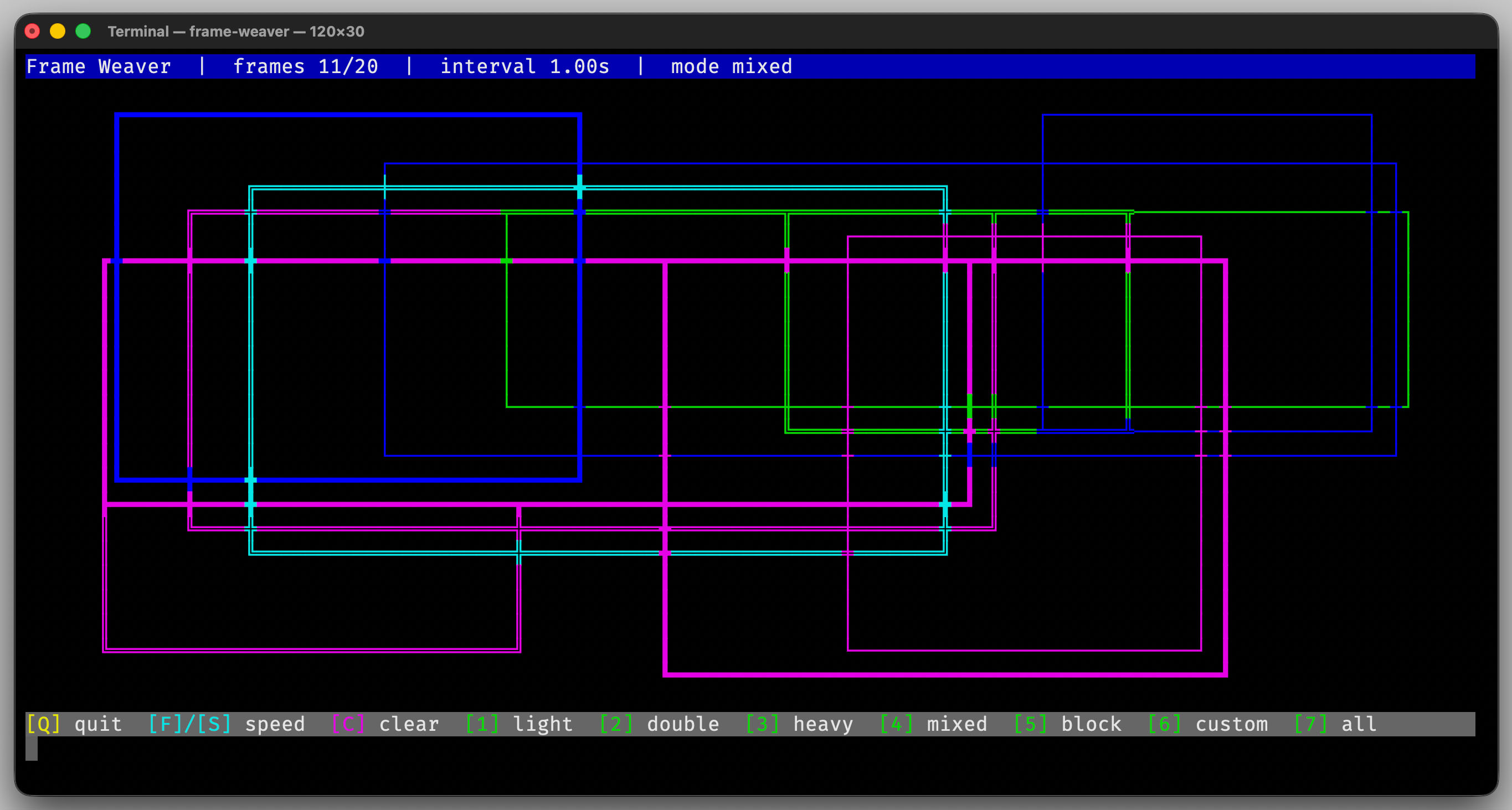frame-weaver demonstrates the frame drawing system of the library. The application continuously places